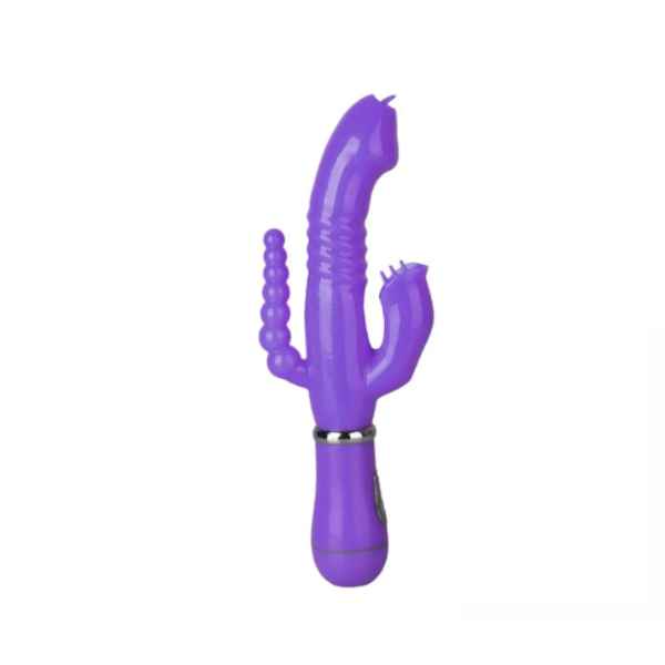 Liberte suas fantasias em qualquer momento! Vibrador Ponto G e Clitóris com Plug Anal, é recarregavel, possui 12 modos de vibração. Utiliza a vibração como forma de estímulo, fazendo você sentir novas sensações. Seu toque é aveludado e macio, proporcionando á mulher muito mais conforto na hora da penetração. Sua leve curvatura é perfeita para a descoberta de prazeres ainda desconhecidos. Acompanha o cabo USB. Possui medida de 23cm x 3cm.